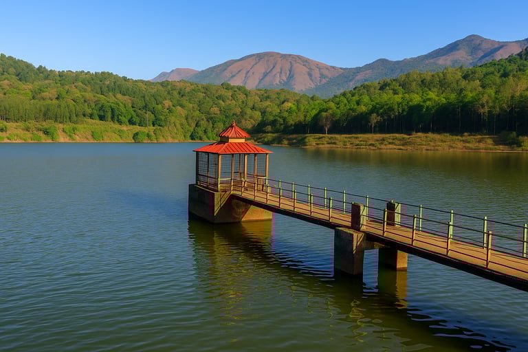 A serene lake surrounded by misty hills, perfect for early morning walks, photography, and sunset views. It’s one of the most peaceful and picturesque spots in Chikmagalur — a must-visit just minutes from the homestay.